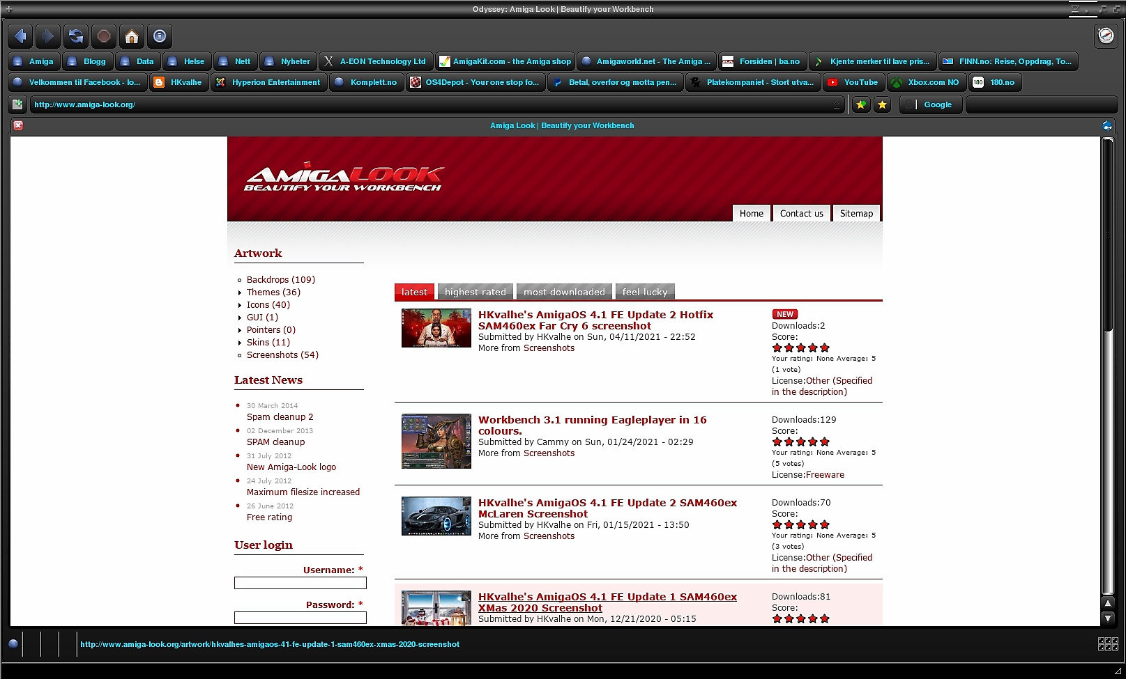 Latest Odyssey 1.23r5 Beta 7 based on my MUI5 Black Green Modern look, running under my refreshed AmigaOS 4.1 Final Edition Update 2 Hotfixed, with Enhancer 2, on my AmigaOne 500 aka SAM460ex. The screenshot shows just how modern your system can look.