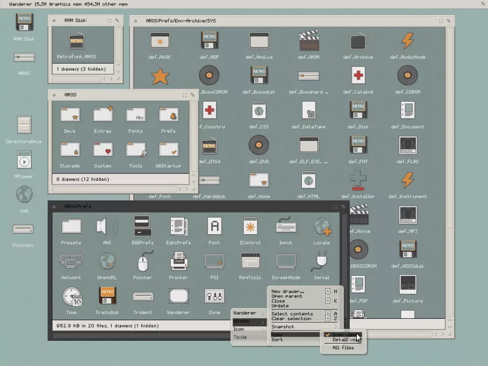 Retrofunk AROS (v.1) is an AROS theme plus icon pack,