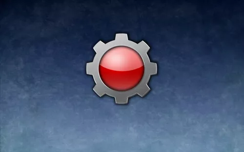 This image uses an updated gear design that I painted for AmiKit that was never used. I liked it so much that I created generic versions in blue & red for my personal wallpaper. The background started life as a parchment pattern that I downloaded from one of the free photos sites many years ago (sorry, but I don't remember which one) -- same for the metal texture on the gear.