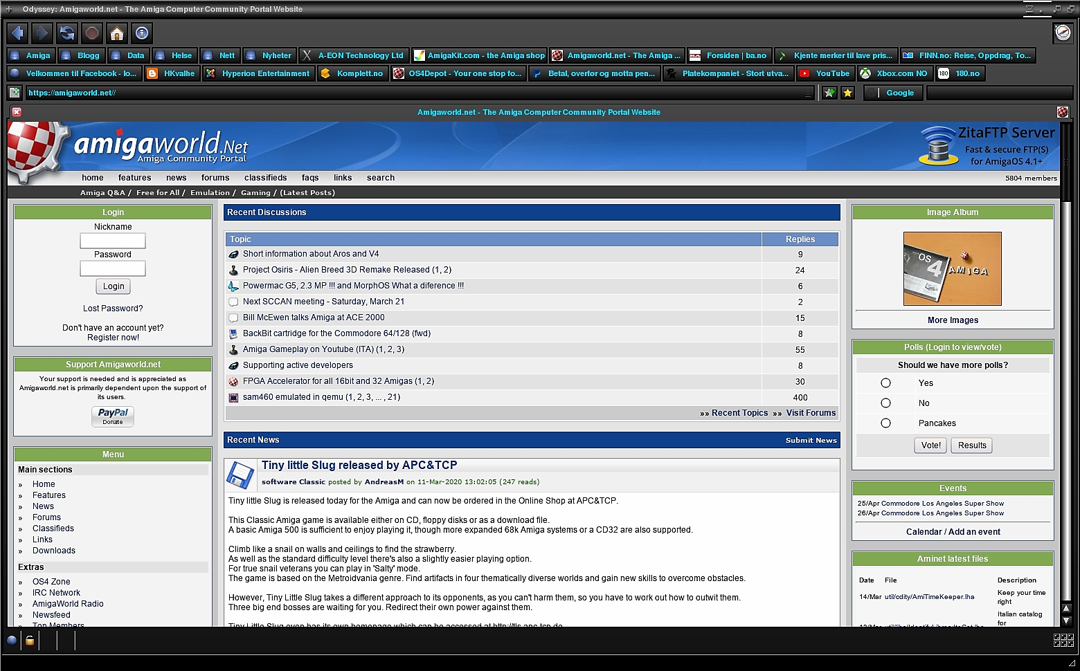 My AmigaOne 500 aka SAM460ex running latest Odyssey 1.23r5 Beta 2 under AmigaOS 4.1 Final Edition Update 1 and Workbench Enhancer 1.5. New updated version works faster and better! Very happy!