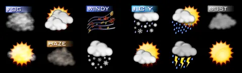 As this icon set was not designed for Wet, some of the more obscure weather conditions don't have the correct icons, and there are no overlay icons.