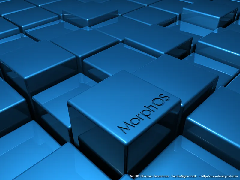 Fogless cubes with MorphOS wallpaper created by tokai.