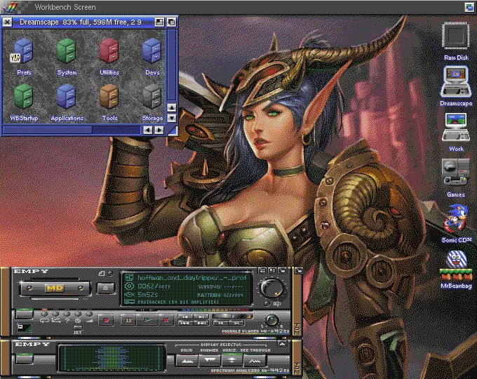 Workbench 3.1 running Eagleplayer in 16 colours.
