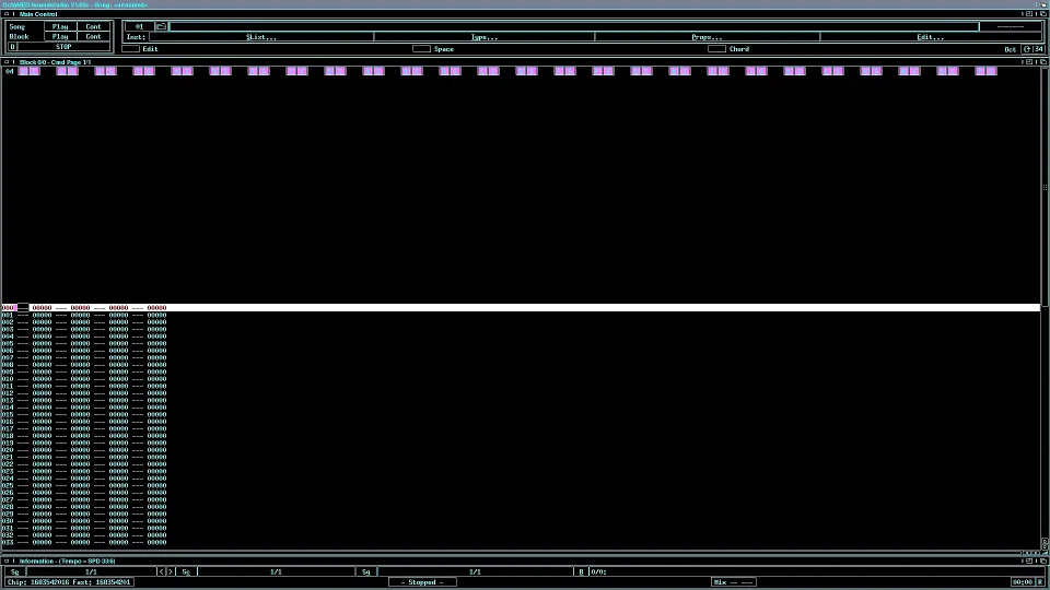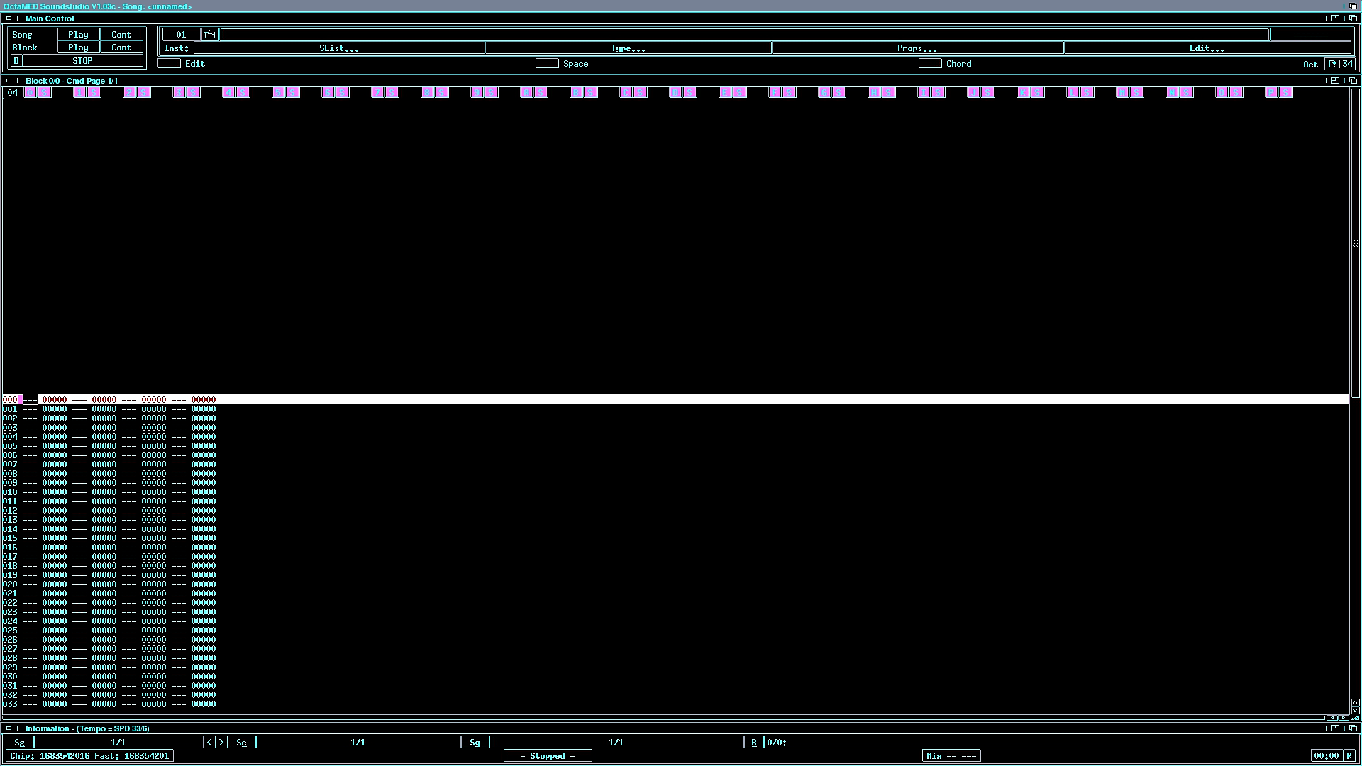 My black blue styled NSM-patched version of OctaMED SoundStudio v1.03c running on my AmigaOne 500 aka SAM460ex.